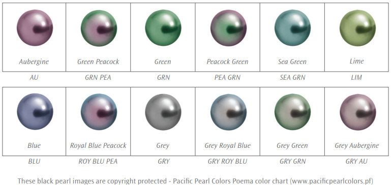 pearls) come in shades of Aubergine, Blue, Green and Grey, all with various hues. Every pearl reflects