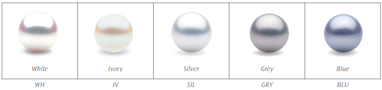 varied colours. Pearls from the Pinctada maxima oyster come in shades of White, Ivory, Silver, Blue,